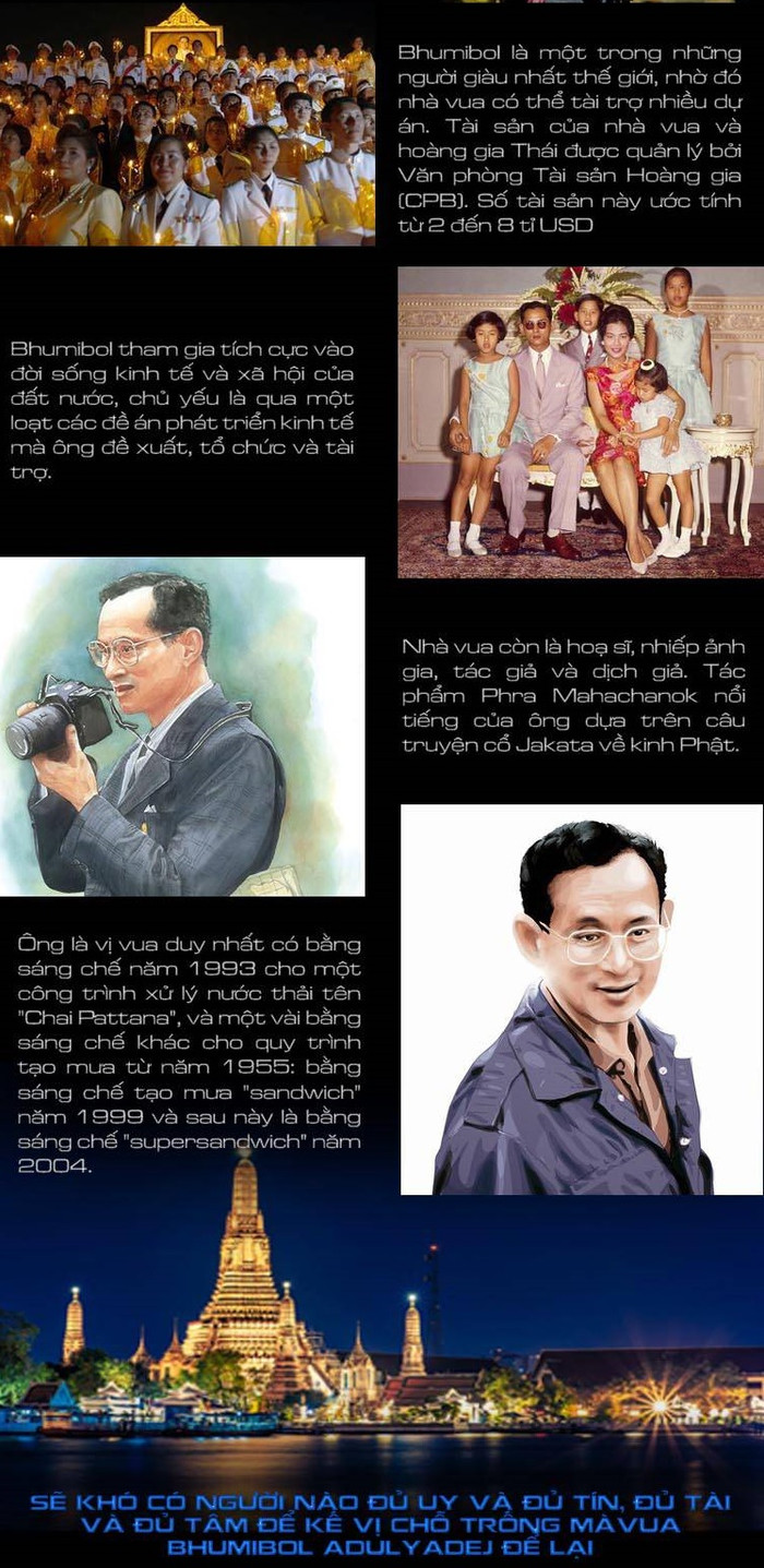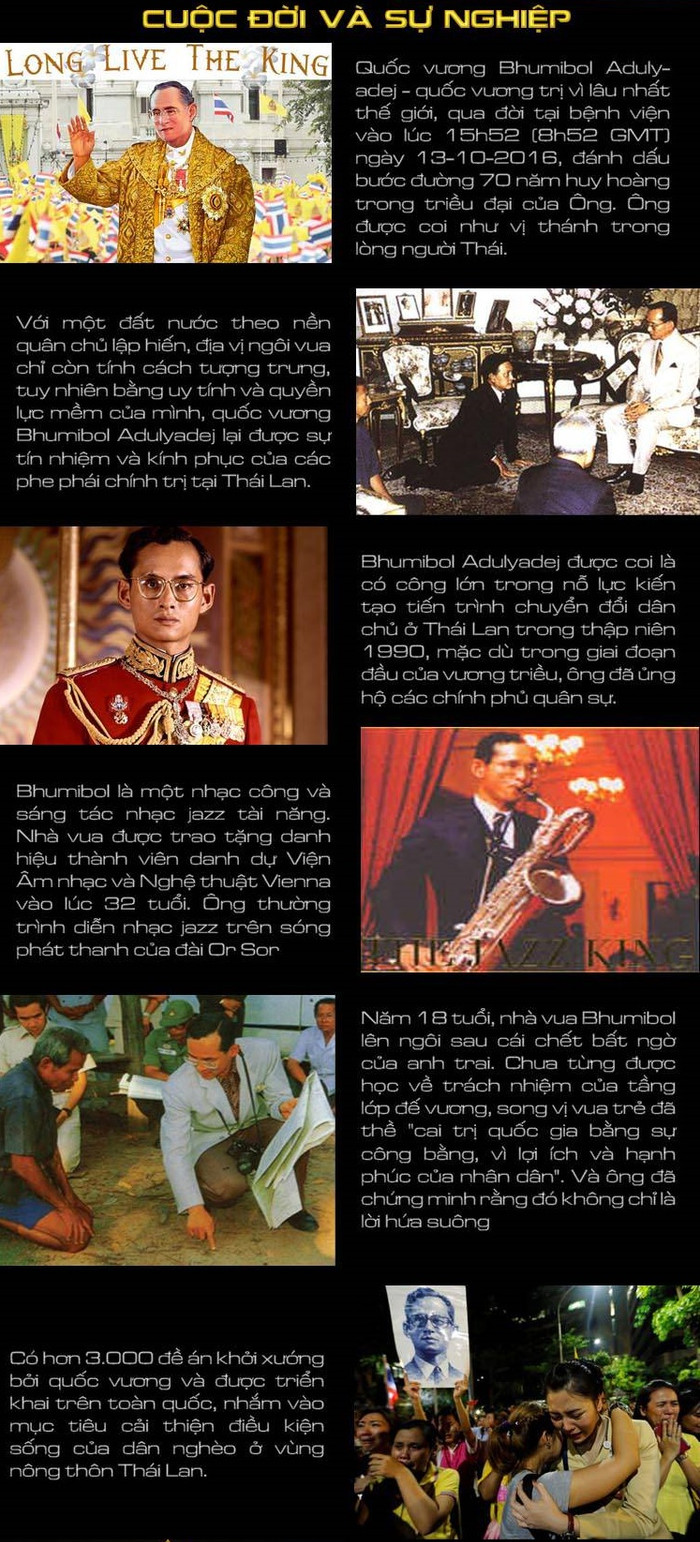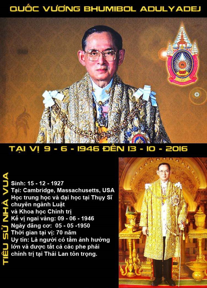 Hàng triệu người dân Thái Lan òa khóc khi biết tin quốc vương thân yêu của họ Quốc vương Bhumibol Adulyadej đã từ trần, bỏ lại cuộc đời 88 năm với 70 năm tại vị.