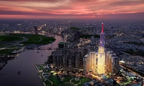 Vinpearl Luxury Landmark 81 nổi bật trong khu đô thị hiện đại bậc nhất Việt Nam với thiết kế lấy cảm hứng từ bó tre truyền thống của Việt Nam, biểu tượng của sự đoàn kết và thịnh vượng.