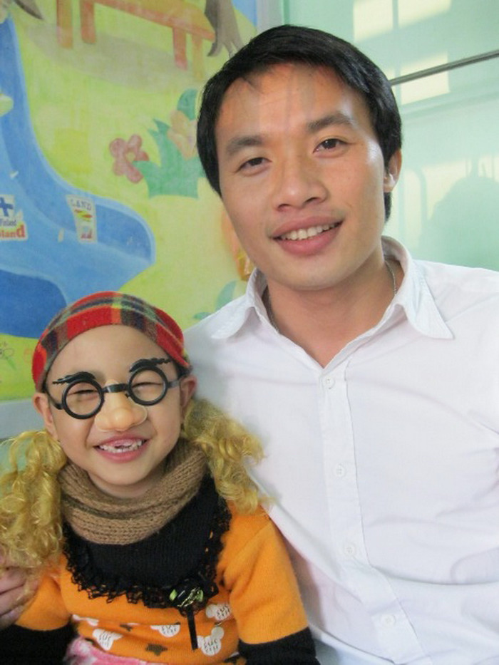| Mặc dù bé Huyền Trang (khoa Ung Bướu) chuẩn bị truyền hóa chất trong buổi sáng, nhưng vẫn tươi cười khi được chụp ảnh |