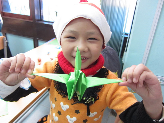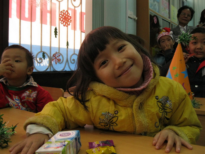 | Bé Huyền Trang "nhảy múa" ở hành lang bệnh viện khi vừa mới được lần đầu tiên tham gia đón giáng sinh cùng lớp học. |