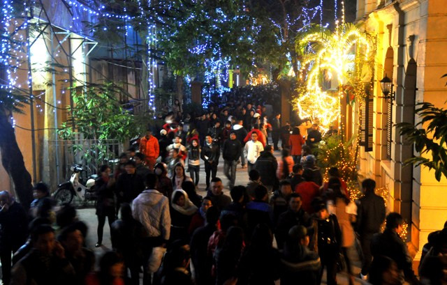 | Đã trở thành thông lệ, hàng năm người dân Thủ đô lại tìm về ngôi thánh đường lớn nhất Hà Nội - Nhà thờ lớn để đón Giáng sinh cùng bạn bè và người thân. |