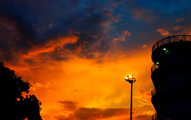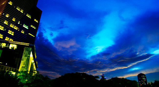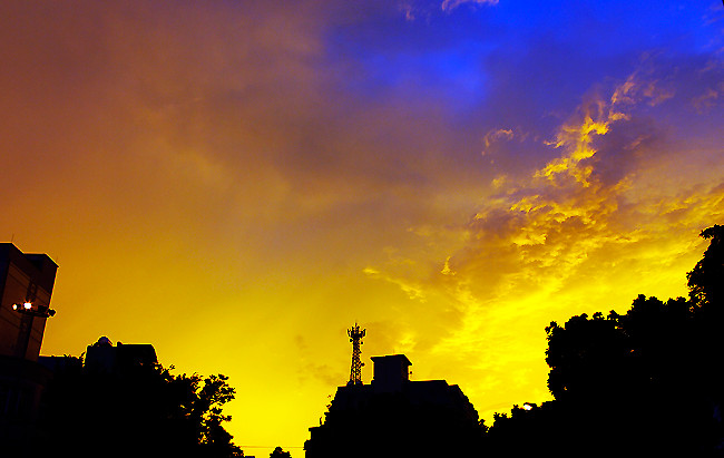 Cơn mưa giông vào chiều tối ngày 10/7 khiến cả thành phố tối sầm, úng ngập một số nơi. Nhưng việc nó đến bất chợt rồi nhanh chóng rút đi đã để lại cho bầu trời Hà Nội một khoảng không đầy màu sắc. Những hình ảnh này được phóng viên Báo TT&VH ghi lại chiều qua.