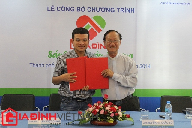 | Nhà báo Trần Việt Dũng và Linh mục Phan Khắc Từ đang kí kết hợp tác chương trình |