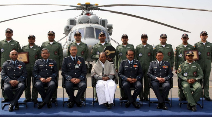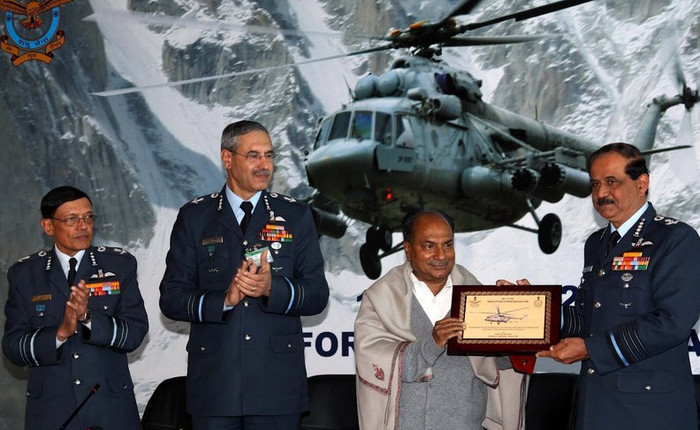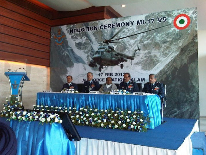 (GDVN) - Hôm 17/2/2012 vừa qua tại Căn cứ không quân Palam, ở New Delhi. Bộ trưởng quốc phòng Ấn Độ A. K. Antony đã có mặt tại buổi lễ bàn giao những chiếc trực thăng MI-17V5 cho Không quân nước này. MI-17V5 là loại trực thăng vận tải đa năng do Nga sản xuất và hợp tác chế tạo với nước ngoài.