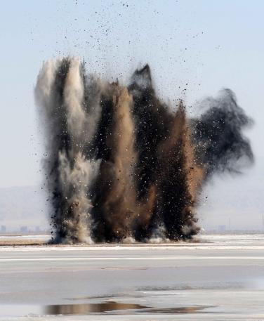 | Sông Hoàng Hà thường bị nghẽn dòng vào mùa xuân khi băng tan, đoạn chảy qua Nội Mông Cổ bị ảnh hưởng nặng nề nhất. Khi thời tiết ấm lên, các tảng băng lớn trôi từ từ trên sông tạo thành một đập lớn chặn dòng nước chảy từ thượng lưu về, nhiều khi mực nước tăng lên gây ngập lụt. Đoạn sông Hoàng Hà chảy qua Khu tự trị Nội Mông có tốc độ chảy thấp, khi gặp băng cản trở, tốc độ dòng chảy càng thấp hơn. Do đó, không quân mới phải dùng bom phá băng. Ảnh: Kiểm tra bom trước khi đưa lên máy bay ngày 22/03/2011 |