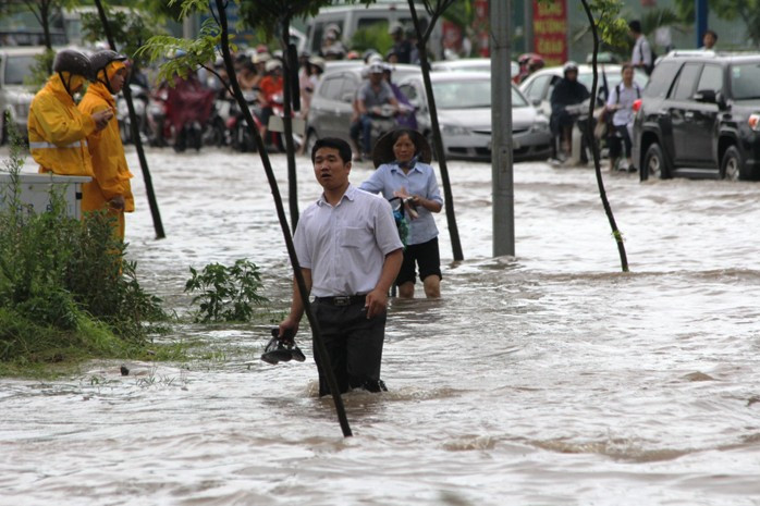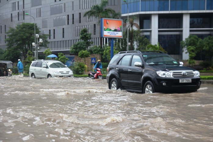 | Hơn 4h chiều, đoạn đường đối diện tòa nhà Keangnam ngập sâu trong nước |