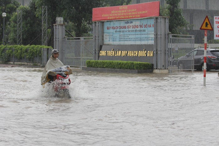 | Đường Đỗ Đức Dục, trước cửa Cung triển lãm quy hoạch Quốc gia tình trạng ngập cũng khá nghiêm trọng |