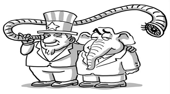 | Hình ảnh này được vẽ, xuyên tạc, tuyên truyền là Việt Nam núp sau Mỹ, do Mỹ giật dây |