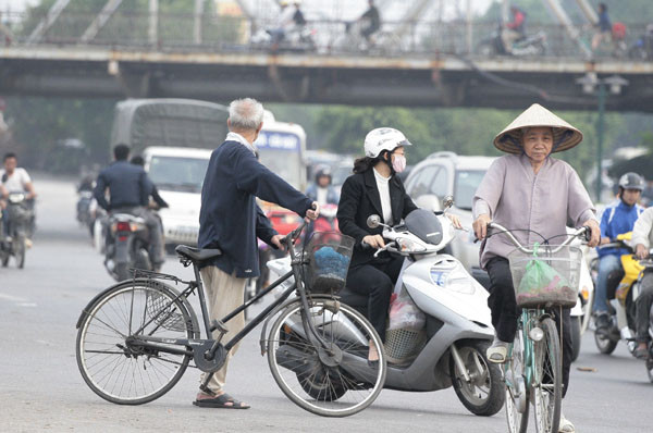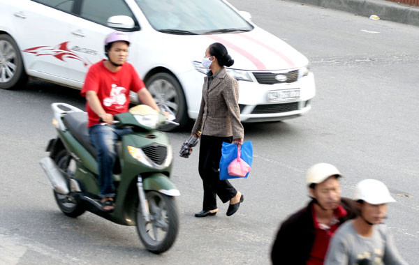 | Đoạn từ con đường gốm sức sang bến xe bus Long Biên có nhiều điểm sang đường khá xa nên những người cao tuổi đành phải băng ngang qua dòng người như thế này |