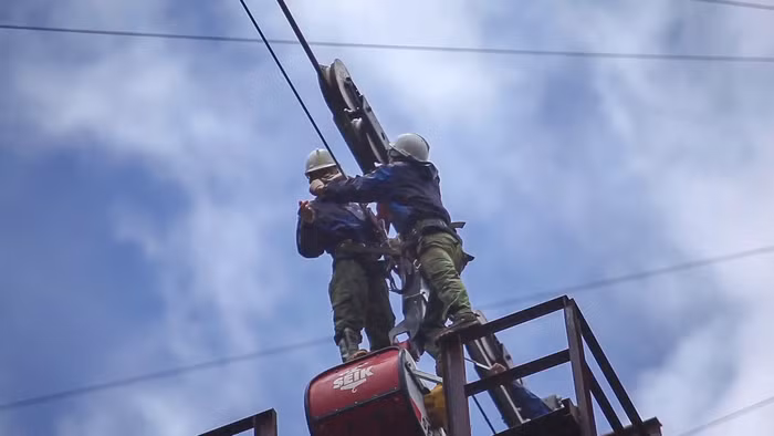 | Thời tiết khắc nghiệt luôn là thử thách cho các công nhân kéo điện |