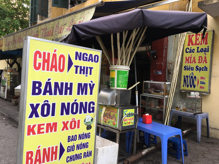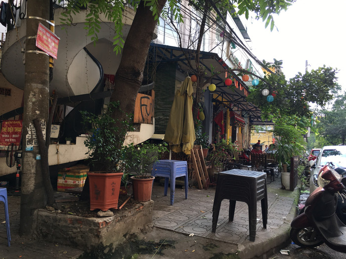 | Bên ngoài cổng chính Trường đại học Công Đoàn là những quán trà đá, nhếch nhác. Ảnh: Vũ Phương. |