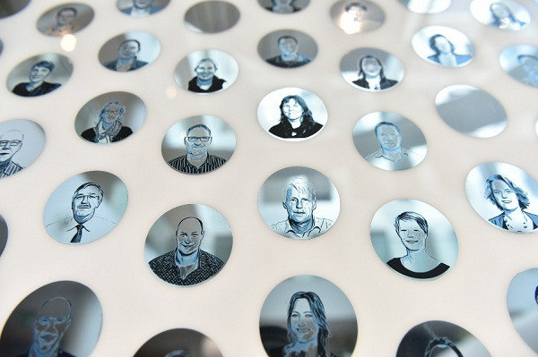 Phía sau quầy lễ tân là bức tường với hàng trăm khuôn mặt nhân viên được in theo dạng âm bản. Theo bà Ingrid Mol - Giám đốc Nghiên cứu và Phát triển của Tập đoàn FrieslandCampina, bức tường này thể hiện sự trân trọng và đề cao yếu tố con người trong sự phát triển của tập đoàn.
