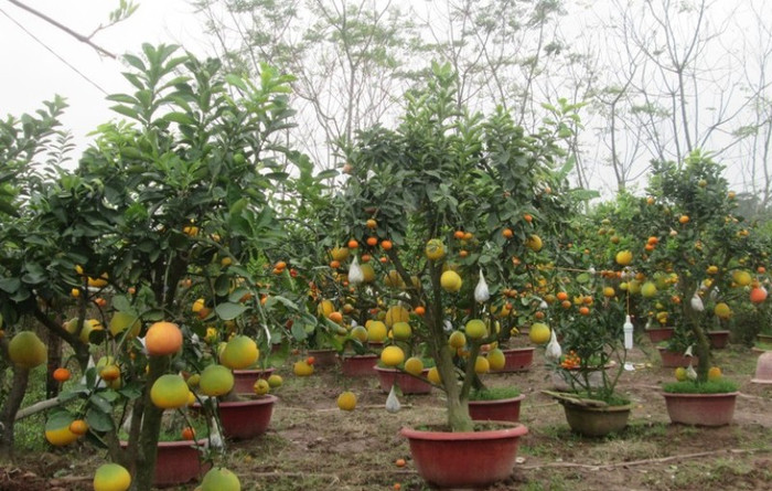 | Vườn cây đã cho gia đình ông Giáp thu nhập cả trăm triệu mỗi dịp tết đến (ảnh HC) |
