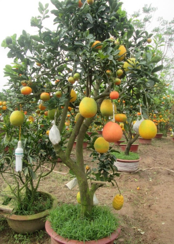 Nắm bắt được nhu cầu chơi cây cảnh độc và lạ vào mỗi dịp Tết của khách hàng, năm 2009, ông Giáp tiếp tục ghép hàng trăm cây có 5 loại quả để phục vụ Tết Nguyên đán.