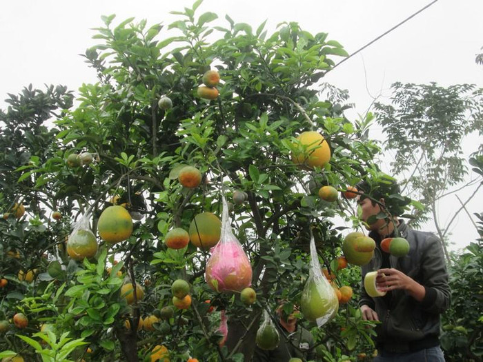 Theo ông Giáp, để các loại quả chín cùng một thời điểm vào dịp tết, tháng 4 ông bắt đầu ghép quả bưởi, tháng 5 ghép quả cam, chanh đào và còn lại loại quả Phật thủ, quất, quýt được ông ghép vào tháng 8.