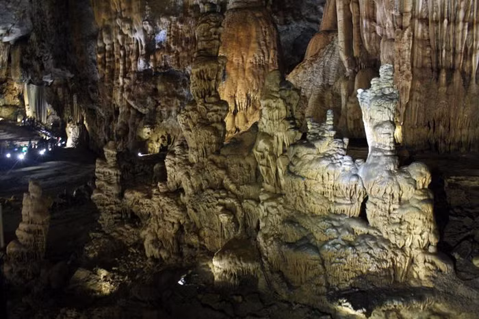 | Hệ thống thạch nhũ trong động vô cùng phong phú và đa dạng về hình hài, màu sắc. Càng đi sâu vào trong, trí tò mò và sáng tạo của du khách càng được phát huy. |