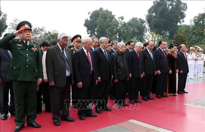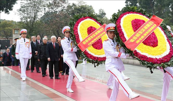 Nhân kỷ niệm 89 năm Ngày thành lập Đảng Cộng sản Việt Nam (3/2/1930 - 3/2/2019) và đón Tết Nguyên đán Kỷ Hợi 2019, sáng 1/2, tại Hà Nội, Đoàn đại biểu Ban Chấp hành Trung ương Đảng, Chủ tịch nước, Quốc hội, Chính phủ, Uỷ ban Trung ương Mặt trận Tổ quốc Việt Nam, do Tổng Bí thư, Chủ tịch nước Nguyễn Phú Trọng dẫn đầu, đến đặt vòng hoa tại Đài tưởng niệm các Anh hùng liệt sĩ.