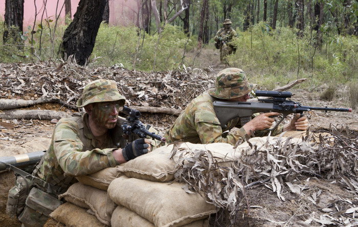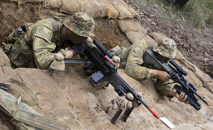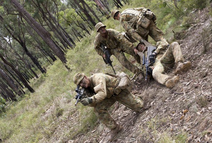 | Một tốp lính Australia đang trong giai đoạn huấn luyện chiến thuật bộ binh |