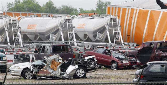 | Nhiều chiếc xe tải lớn cũng không chịu nổi sức tàn phá của trận lốc xoáy này. |