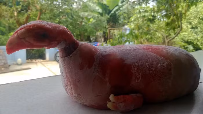 | Phần đầu con "quái thú" giống hệt gà (ảnh: ĐỨC THIỆN) |