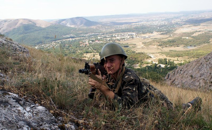 | Binh sỹ thuộc đại đội bộ binh, Lữ đoàn phòng thủ ven bờ, Hải quân Ucraina tập trận trên địa hình đồi núi |