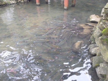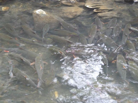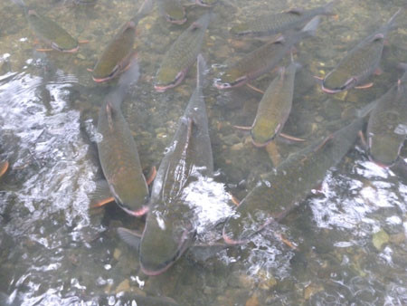 | Những đàn cá "thần" này đã có từ rất lâu đời ở một số suối thuộc huyện Bá Thước, Cẩm Thủy (Thanh Hóa). |