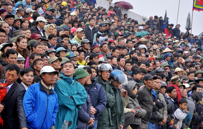 | Từ đầu giờ sáng, người dân đã tới sân vận động Trung tâm TTDTT thị trấn Phúc Thọ để xem các “ông trâu” phô diễn sức mạnh. |
