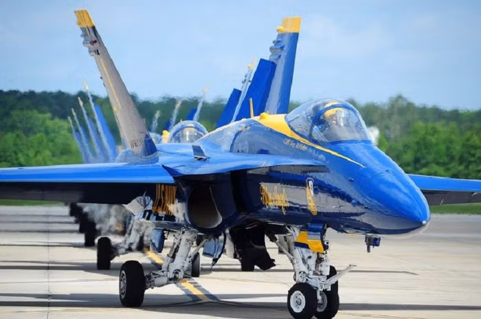 | Thông thường, mỗi lần bay trình diễn, phi đội “Thiên thần xanh” sử dụng 6 máy bay FA-18 Hornet. Khi bay, các máy bay thực hiện các bài bay thể hiện các kỹ năng đa dạng. |