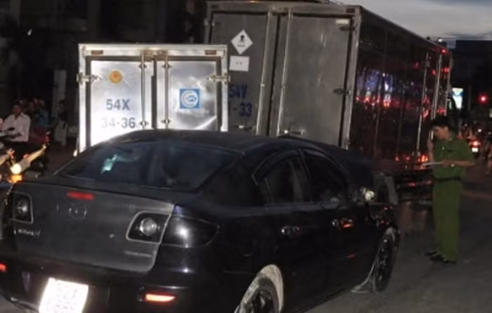 Do bị xe du lịch bất ngờ hút từ phía sau, xe tải xe tải mang BKS 54 X – 3436 lao về phía trước húc mạnh vào đuôi xe tải chở hàng mang BKS 54V – 3133 đang chạy phía trước. Chiếc ô tô điên này chỉ dừng lại khi đâm vào mắc két 2 giữa 2 chiếc xe tải mang BKS:54X-3436 và 54V-3133 (chưa rõ tài xế). Sau khi gây tai nạn, tài xế xe ô tô du lịch bỏ trốn khỏi hiện trường.