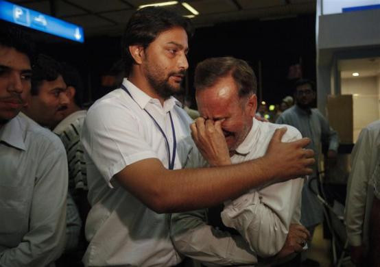 | Một người thân đã chờ ở sân bay quốc tế Benazir Bhutto của Islamabad. Nhưng khi hay tin về vụ tai nạn, ông chỉ còn biết hét lên trong nước mắt: "2 cô con gái của tôi đã chết." |