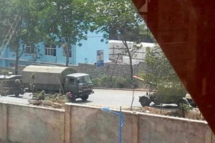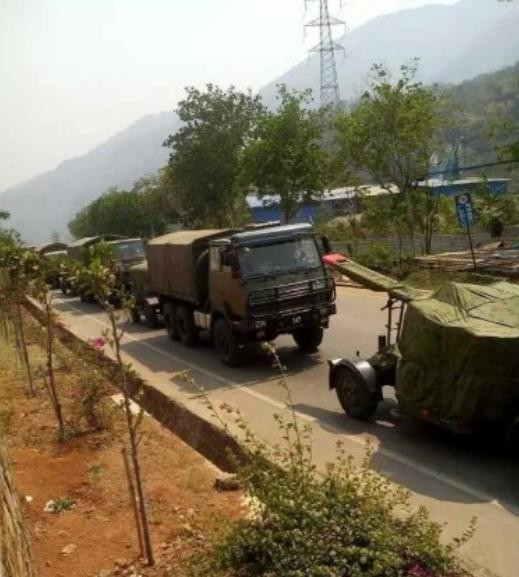| Xe quân sự Trung Quốc tập kết ở biên giới với Myanmar (nguồn mạng sina TQ) |