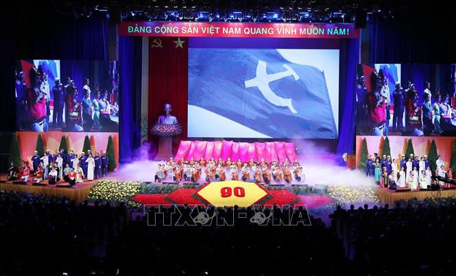 | Chương trình văn nghệ chào mừng 90 năm Ngày thành lập Đảng Cộng sản Việt Nam (3/2/1930 - 3/2/2020). Ảnh: Lâm Khánh/TTXVN |