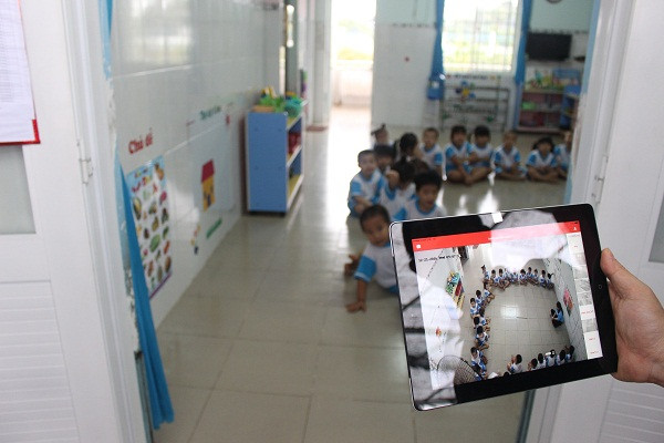 | Chương trình Mầm non Kết nối Xanh lắp đặt camera cho các nhà trẻ, nhà mẫu giáo tại khu công nghiệp, khu chế xuất tỉnh Bình Dương, giúp công nhân yên tâm lao động. |
