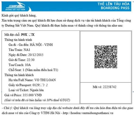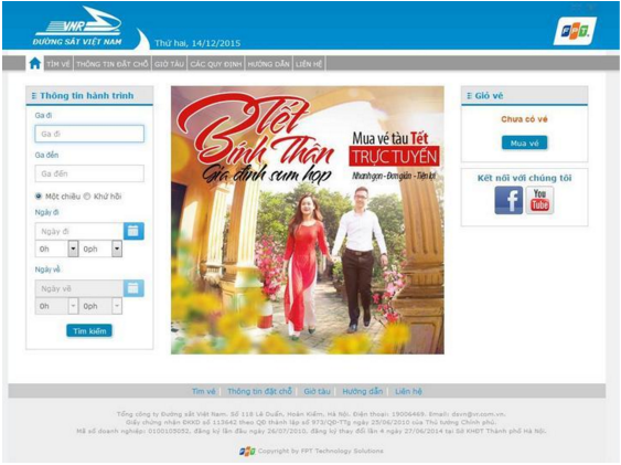 Dịch vụ thanh toán trực tuyến với vé tàu