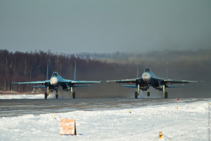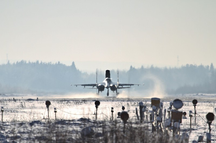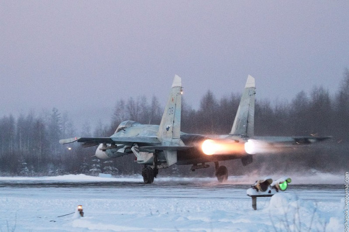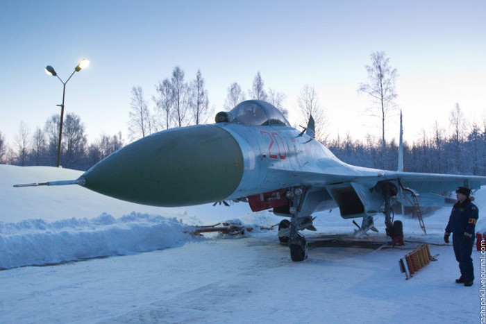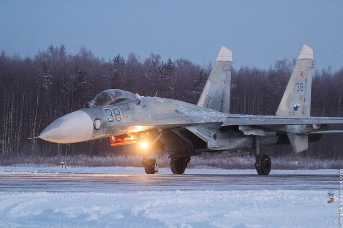 (GDVN) - Cận cảnh những chiến đấu cơ Su-27 và các biến thể nâng cấp Su-27SM/SM3 hoạt động sẵn sàng chiến đấu tại một căn cứ không quân ở gần Petrozavodsk.