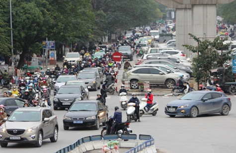 | Vỉa hè cũng trở trở thành nơi di chuyển, dừng đỗ của các phương tiện (Thụy Du). |
