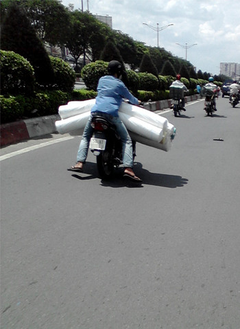 | Chở hàng quá cồng kềnh và nguy hiểm. Ảnh: Nguyễn Mạnh Hùng |