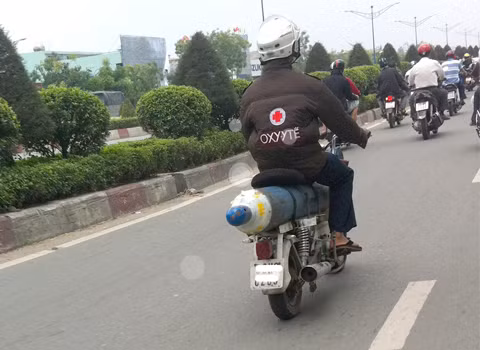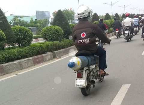 | Xe "chạy bằng khí nén", chụp trên đường Trường Chinh, quận Tân Bình, TP HCM. Ảnh: Trọng Nguyên |