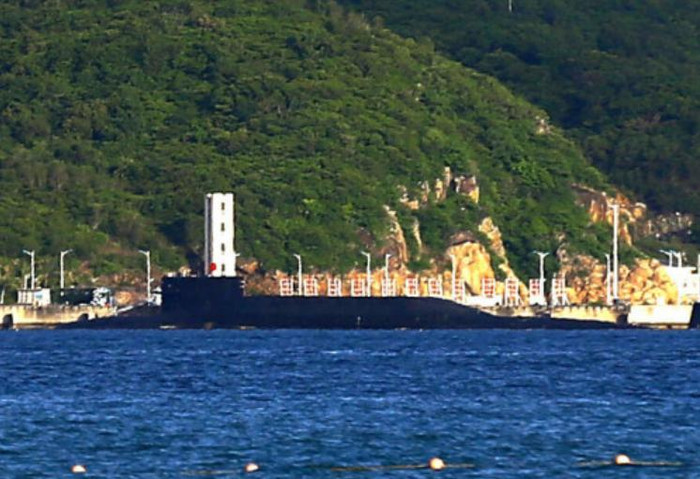 | Tàu ngầm hạt nhân tấn công Type 093 đậu ở trong cảng (nguồn mạng sina TQ) |