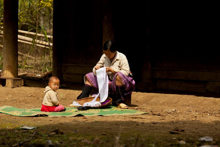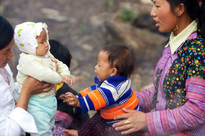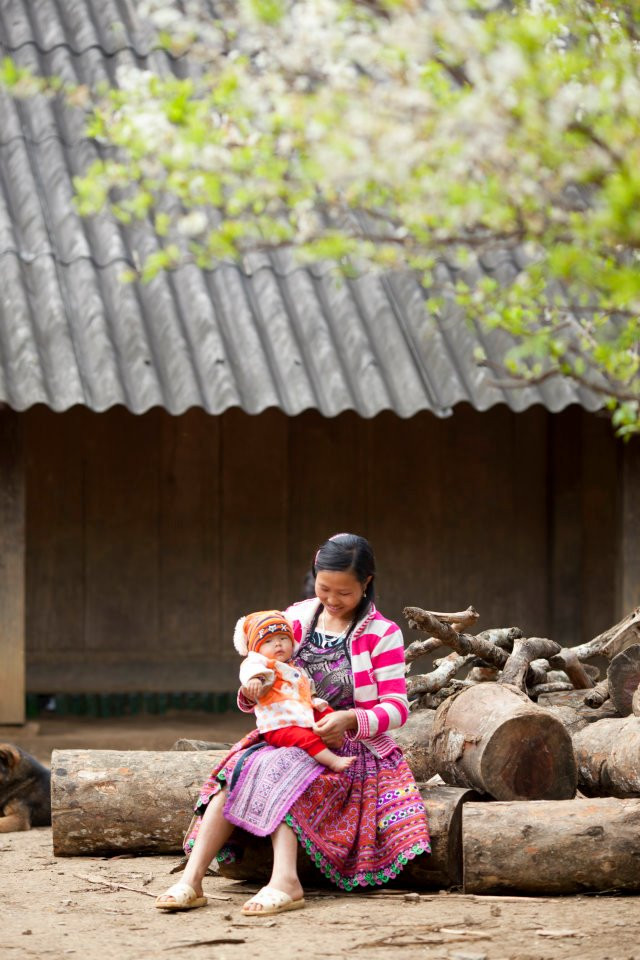 | Những em nhỏ nơi đây luôn được các bà, các mẹ địu trên lưng ngay cả khi lên nương |