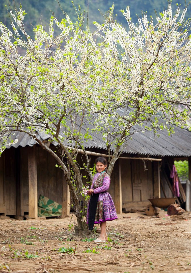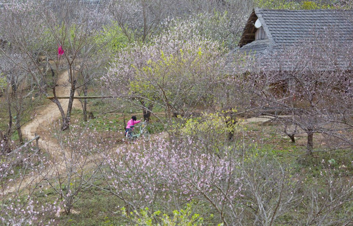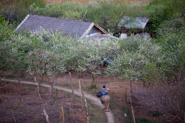 | Trên con đường này vào tháng 3 hàng năm luôn bạt ngàn một màu hoa mận trắng |