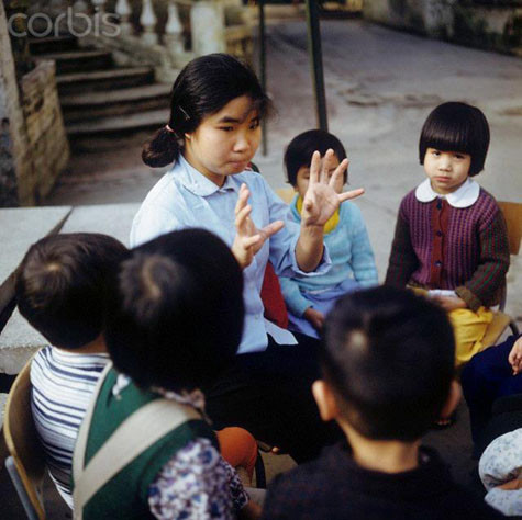| Ngồi chú ý nghe cô giáo giảng bài trong một lớp mẫu giáo ở trung tâm Hà Nội năm 1973 |