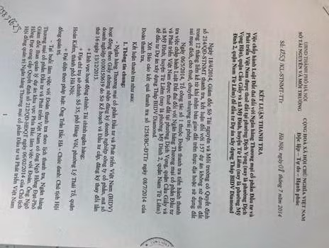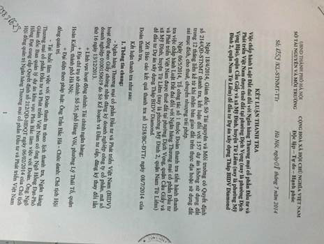 | Kết luận Thanh tra của Sở Tài nguyên và Môi trường Hà Nội chỉ ra nhiều sai phạm của BIDV. Ảnh: Hải Ninh. |