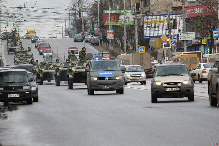 Nhiều người cho rằng sự xuất hiện của đoàn xe thiết giáp ở thành phố có khoảng 500 ngàn dân này có liên quan đến tình hình tại Crimea.