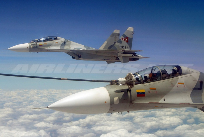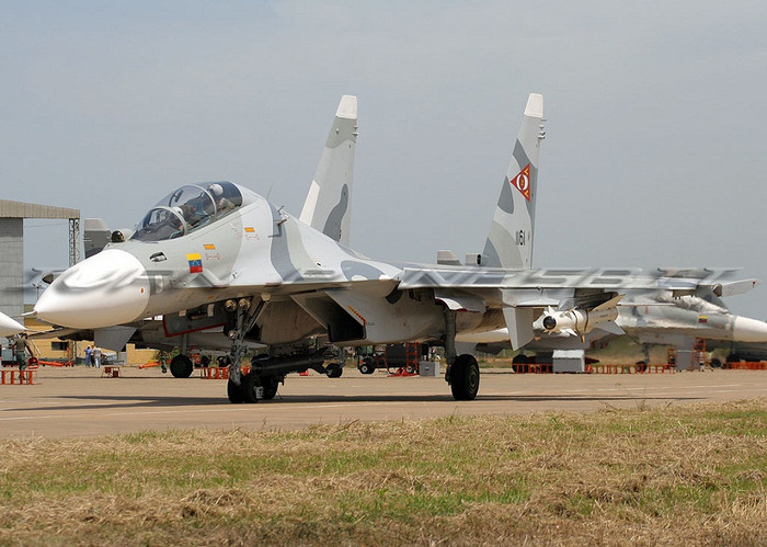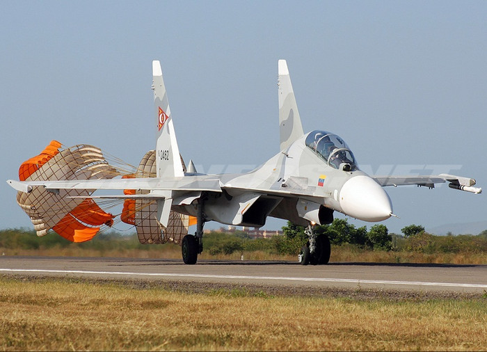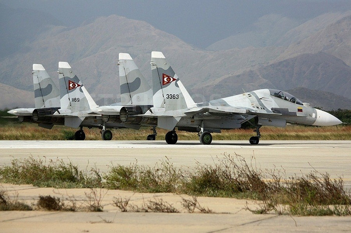 (GDVN) - Su-30MK2 là loại máy bay cường kích hiện đại do Nga sản xuất, được sử dụng trong lực lượng Không quân của các nước như Việt Nam, Trung Quốc, Indonesia và Venezuela. Loại tiêm kích này có thể tác chiến độc lập hoặc theo nhóm, tấn công chính xác các mục tiêu trên không, mặt đất, và trên biển. Với tính năng linh hoạt có thể thực hiện những màn trình diễn bổ nhào, quay tròn trên không, dễ dàng thay đổi góc bay, chính vì vậy Su-30MK2 luôn giành được lợi thế trước đối thủ khi tác chiến trên không. Sau đây là một số hình ảnh tiêm kích hiện đại nhất của Không quân Venezuela.