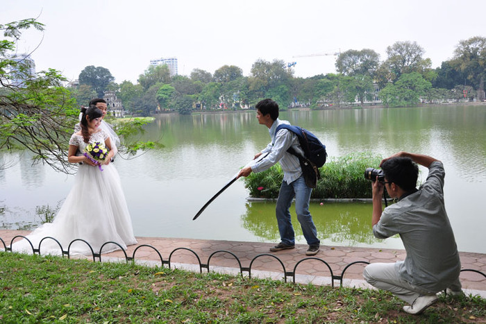 | Hồ Gươm luôn là địa điểm lý tưởng để các cặp đôi vợ chồng tìm đến chụp ảnh cưới. |