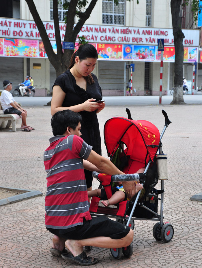 | Các em nhỏ cũng được bố mẹ dẫn tới hồ Gươm để tận hưởng không khí mát mẻ và thanh bình. |