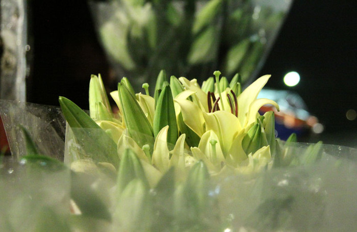 | Khi bình minh hé rạng, những bó hoa e ấp trong ánh sáng hòa quyện giữa đèn điện và nền trời rạng thì vẻ đẹp tươi nguyên nơi "thế giới các loài hoa" mới được cảm nhận rõ nhất. |