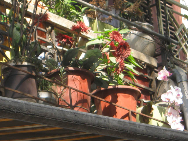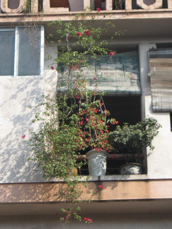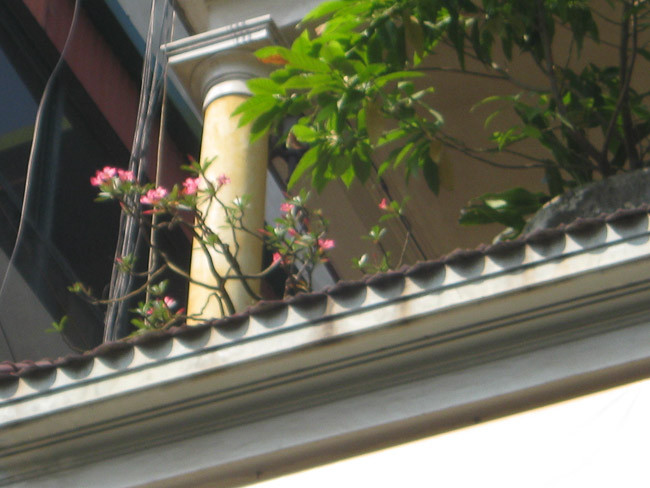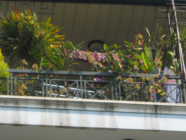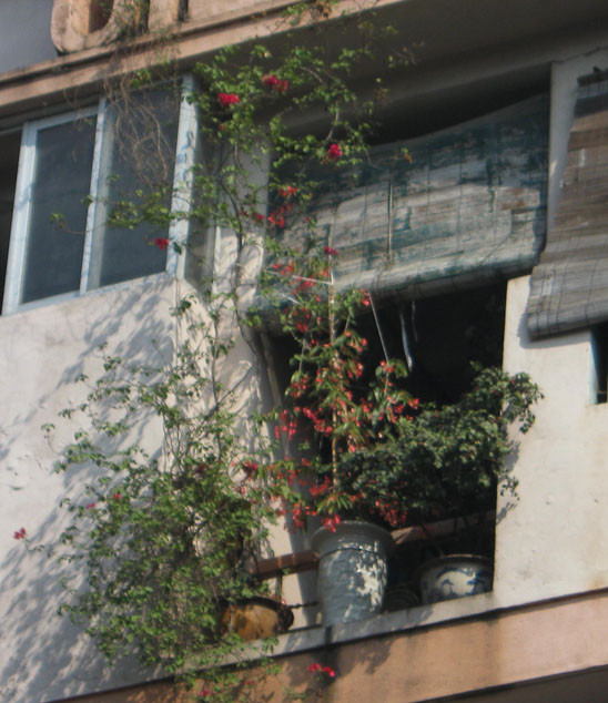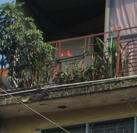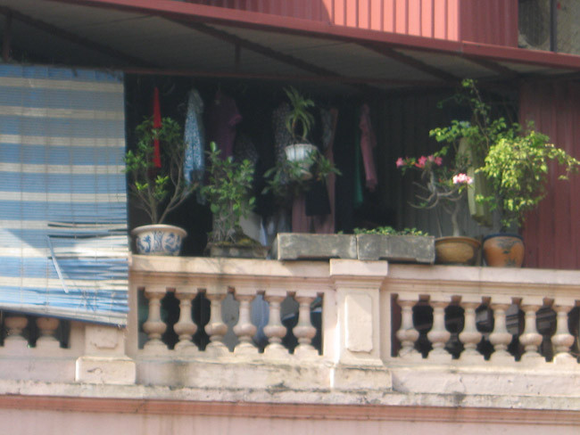 | Tận dụng khoảng không gian chật hẹp, hoa và cây cảnh được gia chủ trồng ở ban công. |