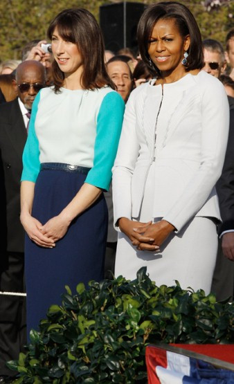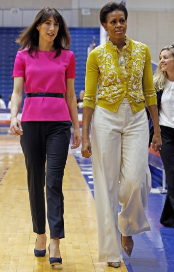 (GDVN) - Ngày 13/3, Thủ tướng Anh David Cameron và phu nhân Samantha Cameron đã bắt đầu chuyến thăm 3 ngày tới Mỹ. Trong khi các phu quân đi xem bóng rổ thì 2 đệ nhất phu nhân đã cùng nhau tới dự một cuộc thi Olympic mimi tại trường đại học Mỹ. Tại đây, trang phục ấn tượng của hai phu nhân đã khiến dư luận chú ý. Không chỉ là bóng hồng sau những người đàn ông quyền lực, họ còn thu hút mọi ánh nhìn bởi phong cách thời trang riêng của mình.